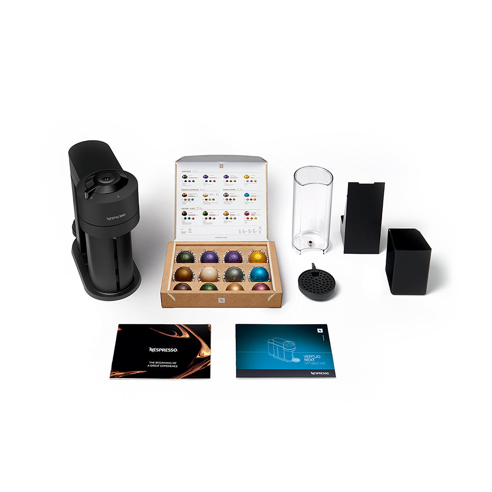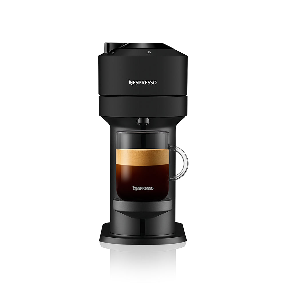 Introducing the Nespresso Vertuo Next Coffee Machine Bundle in Matte Black. Enjoy the full range of coffee styles with seven cup sizes at the touch of a button. Its Centrifusion technology unlocks the hidden treasures of each pod, resulting in a generous and indulgent crema. Made from at least 80% recycled aluminum, it's both sustainable and chic. Perfect for coffee connoisseurs.